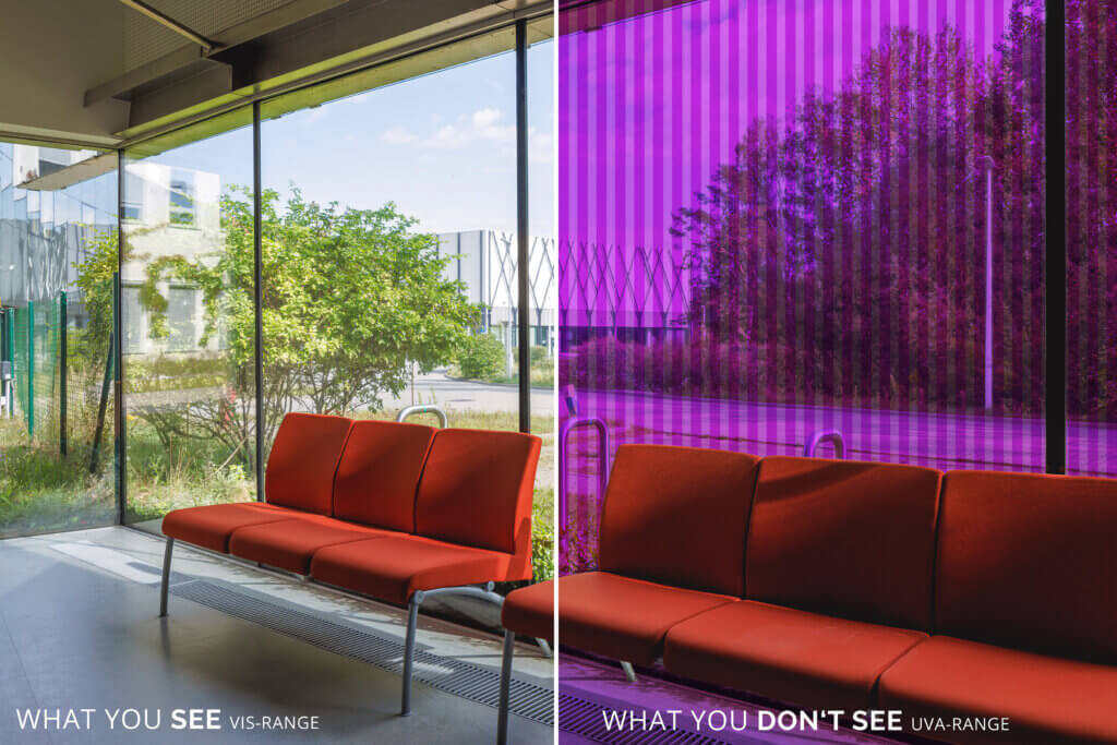 Previously, solutions either impacted the appearance of the glass for humans or involved avoiding the use of glass completely. In contrast, BirdShades’ window film takes advantage of something which only birds can see: UV light. The film is invisible to the human eye and can be easily installed on any size or shape of window: protecting birds whilst preserving all the benefits of glass.